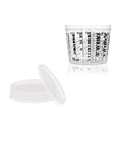 Los vasos mezcladores 1852 Mix-Cup están hechos de plástico de alta calidad y marcados con medidas de volumen y varias proporciones de mezcla.